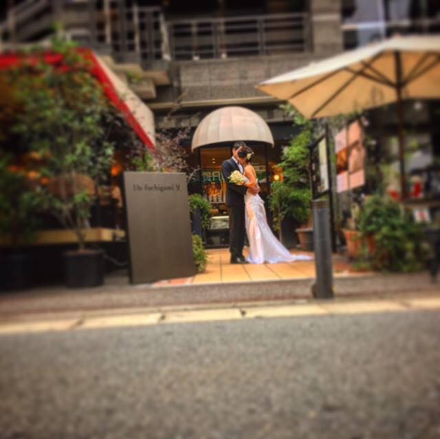 ドレス&タキシードで颯爽と街を歩く新郎新婦もまた絵になるものです。