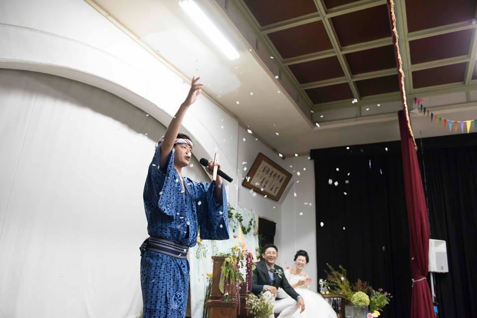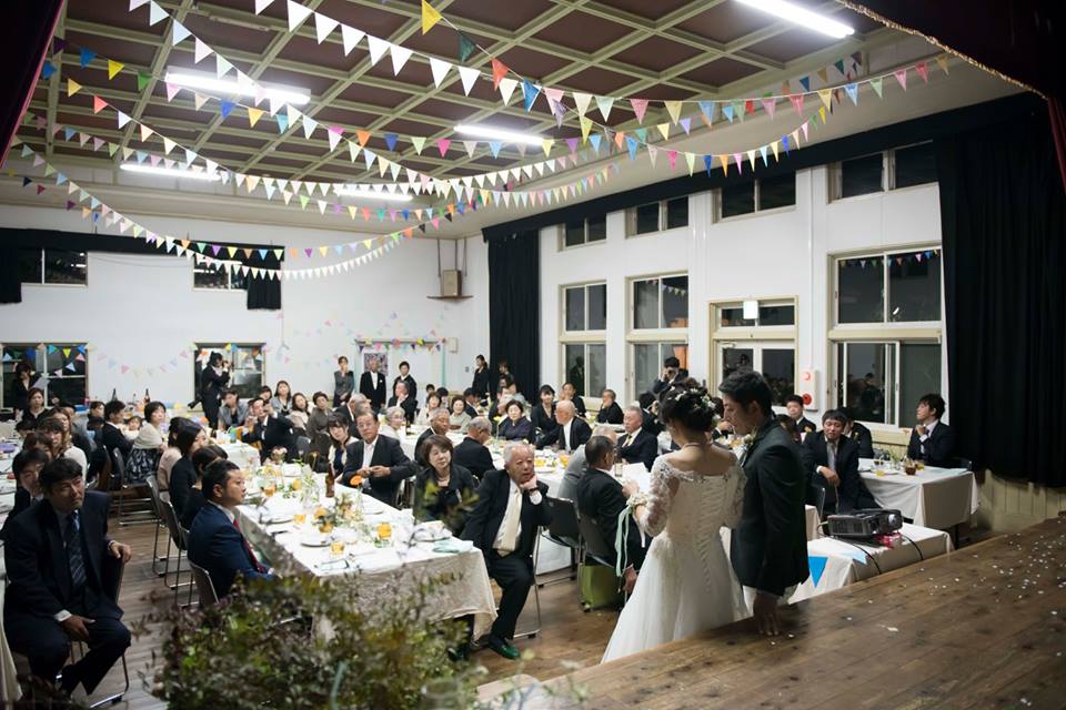 「ゆいきらら」というそのペパーミントグリーンの木造の建物は、今は地域のイベントなどが行われているコミュニティスペースですが、元々は新郎光博さんが通った小学校。