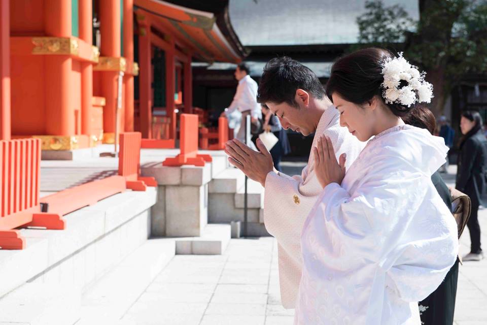 挙式はふたりが何度も一緒にお参りに行ったという宇佐神宮で。