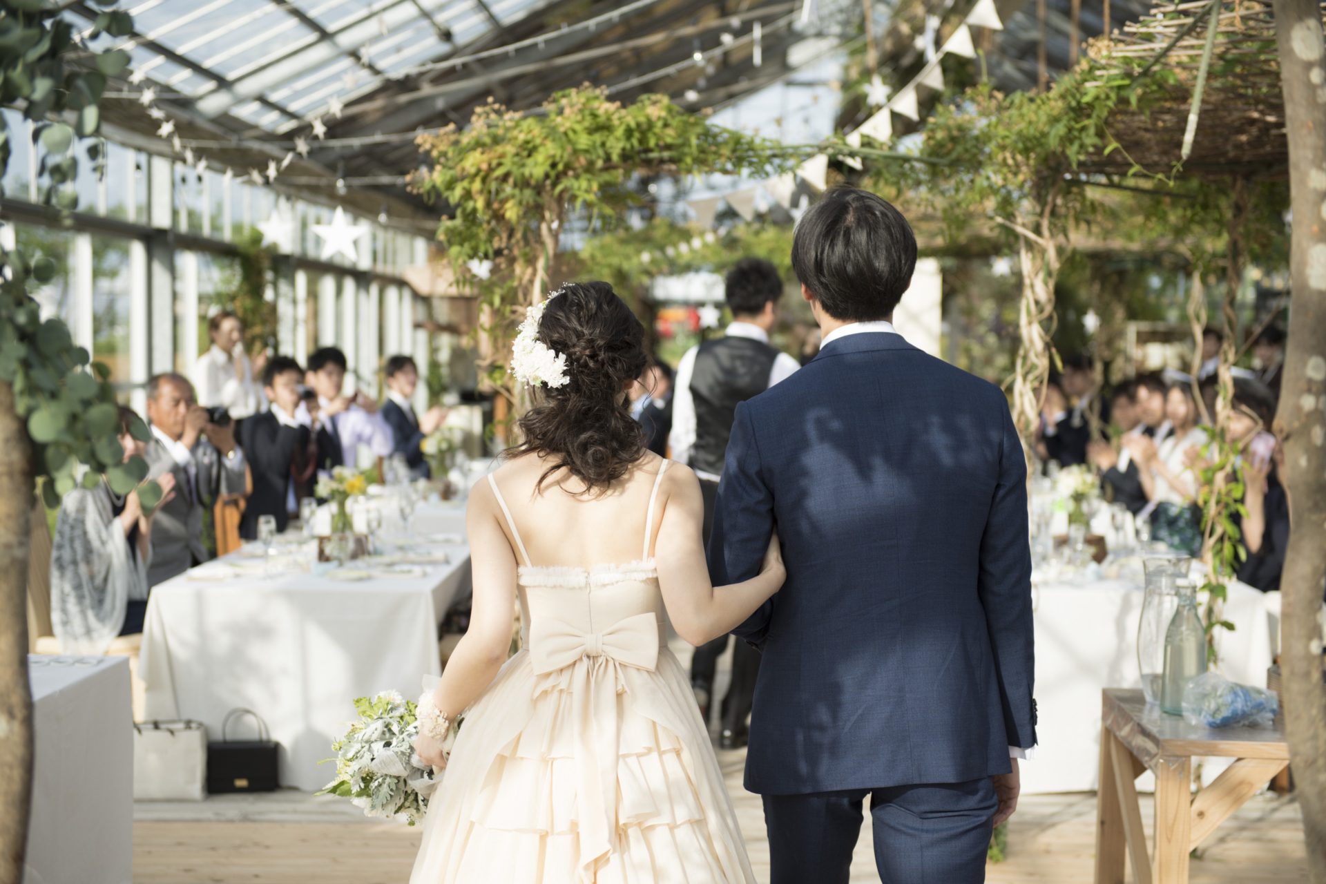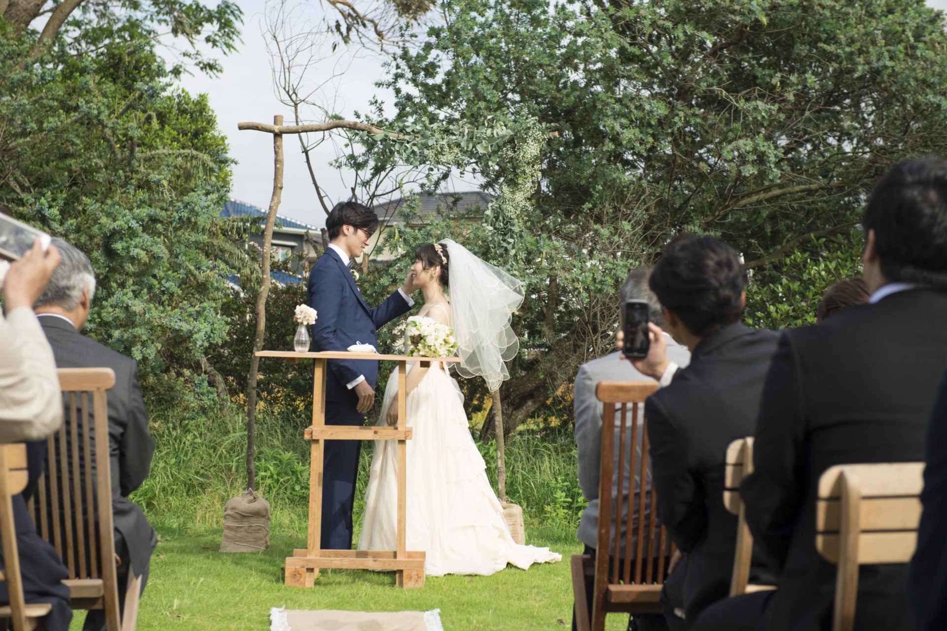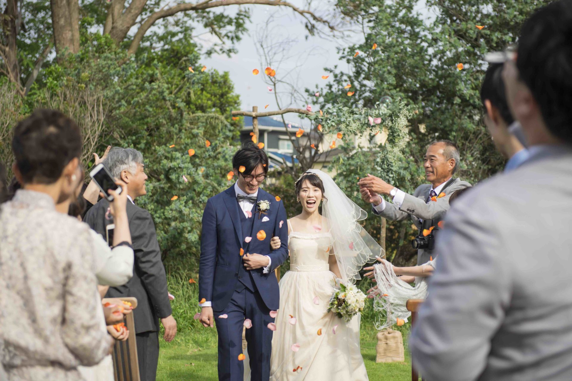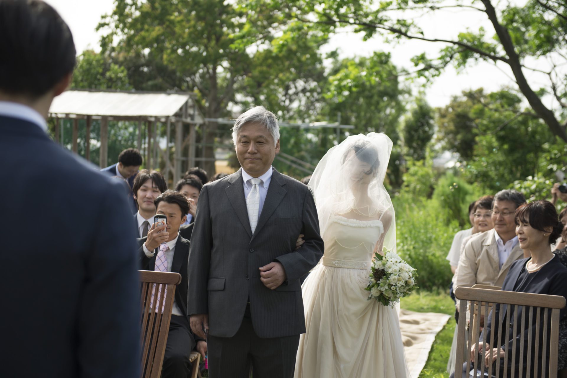 風に揺れる木々花々の間を、お父様と一緒に歩く新婦ゆうみさんを見ていると、自然を愛する心や、素直でまっすぐな優しさを、ご家族から育てていただいたんだなぁって改めて感じました。