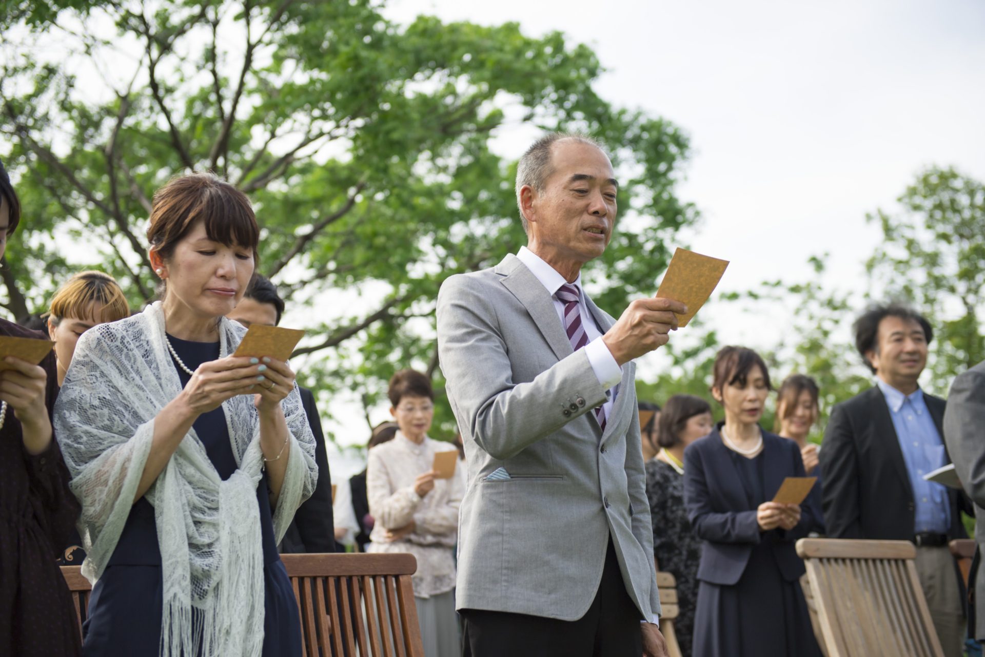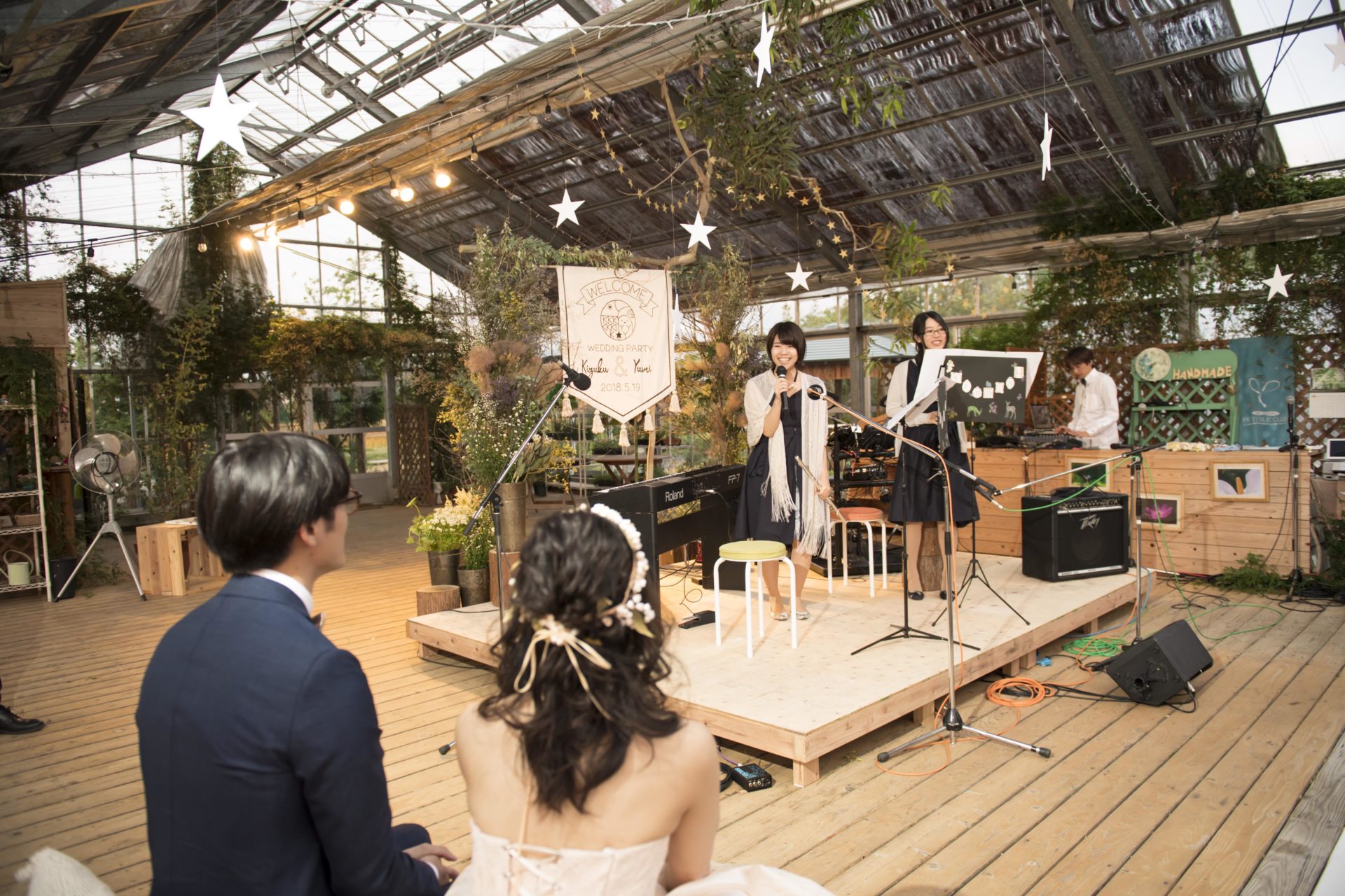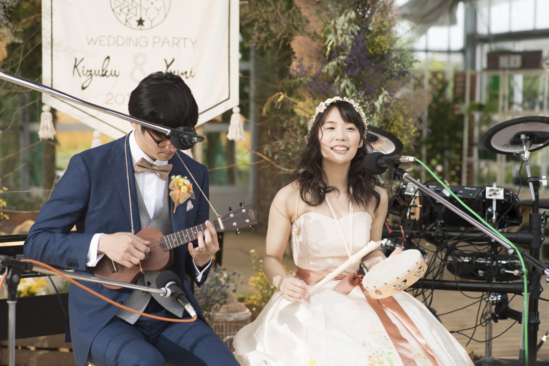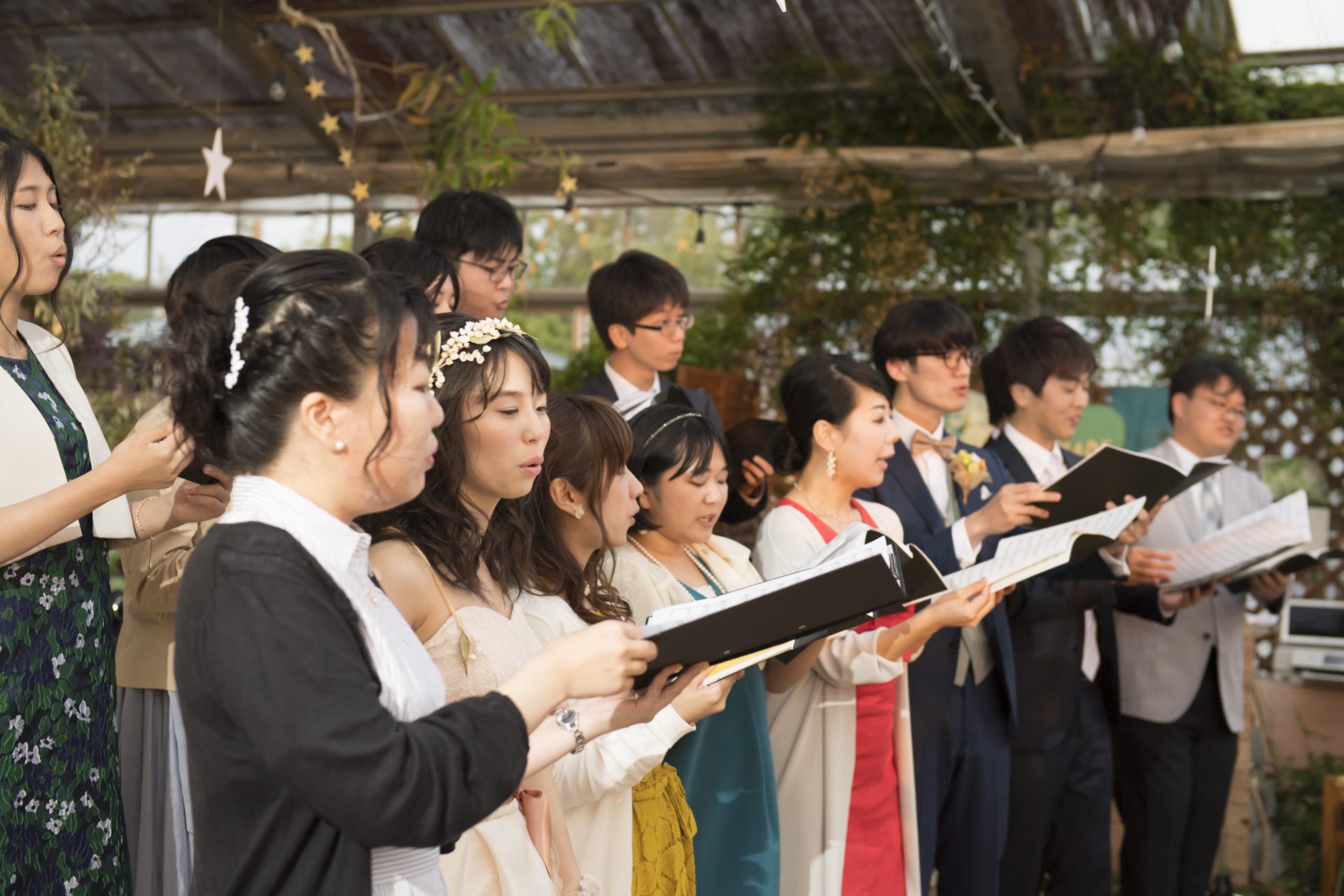 挙式では、ご友人の演奏のもと、みんなで「翼をください」を歌いました。