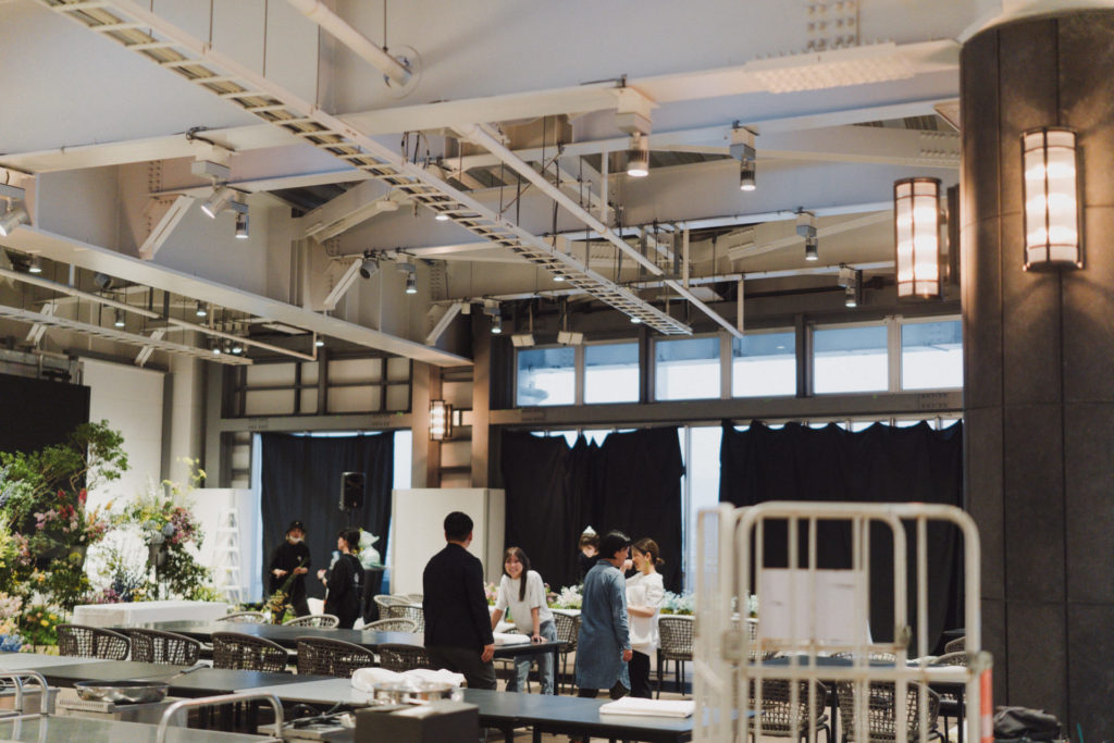 名前もない、広々としたその場所を、2日間かけて作り込み、1日限りの結婚式会場に。
