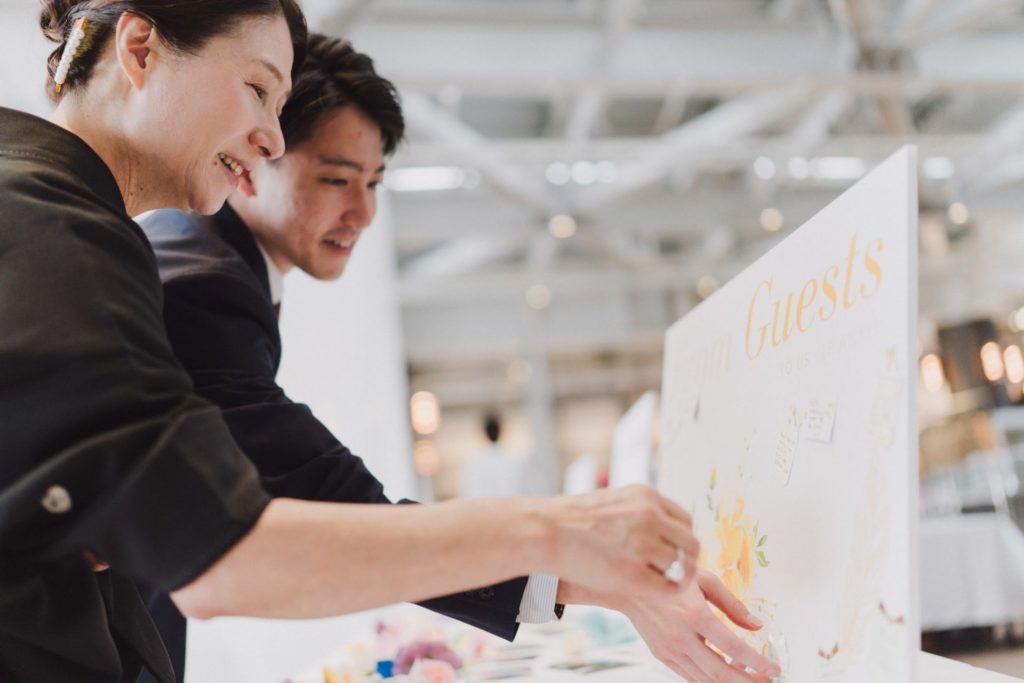 ゲストが到着したら、まずは受付でふたりがお出迎え。