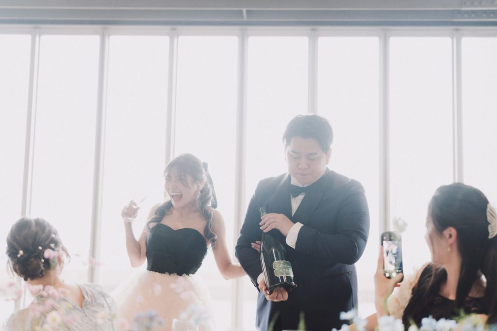 結婚式が結んでも、まだまだ語りたいことが沢山。時折垣間見れる、ふたりの仲良しな姿を嬉しく思いながら、また乾杯できる日を、これからのふたりの日々を、楽しみにしています。